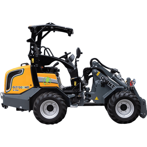 G2700 HD+ este modelul de top din seria G2700, oferind un braț de ridicare standard, ideal pentru sarcini grele. Încărcătorul articulat este echipat cu un motor Kubota de 50 CP care respectă cele mai recente norme de emisii și cu axe planetare de 12 tone, dotate cu blocaj diferențial 100% activabil electric pe ambele axuri. Acest sistem de propulsie oferă G2700 HD+ o forță de tracțiune impresionantă de 28.000 N și o viteză maximă de deplasare de 30 km/h.